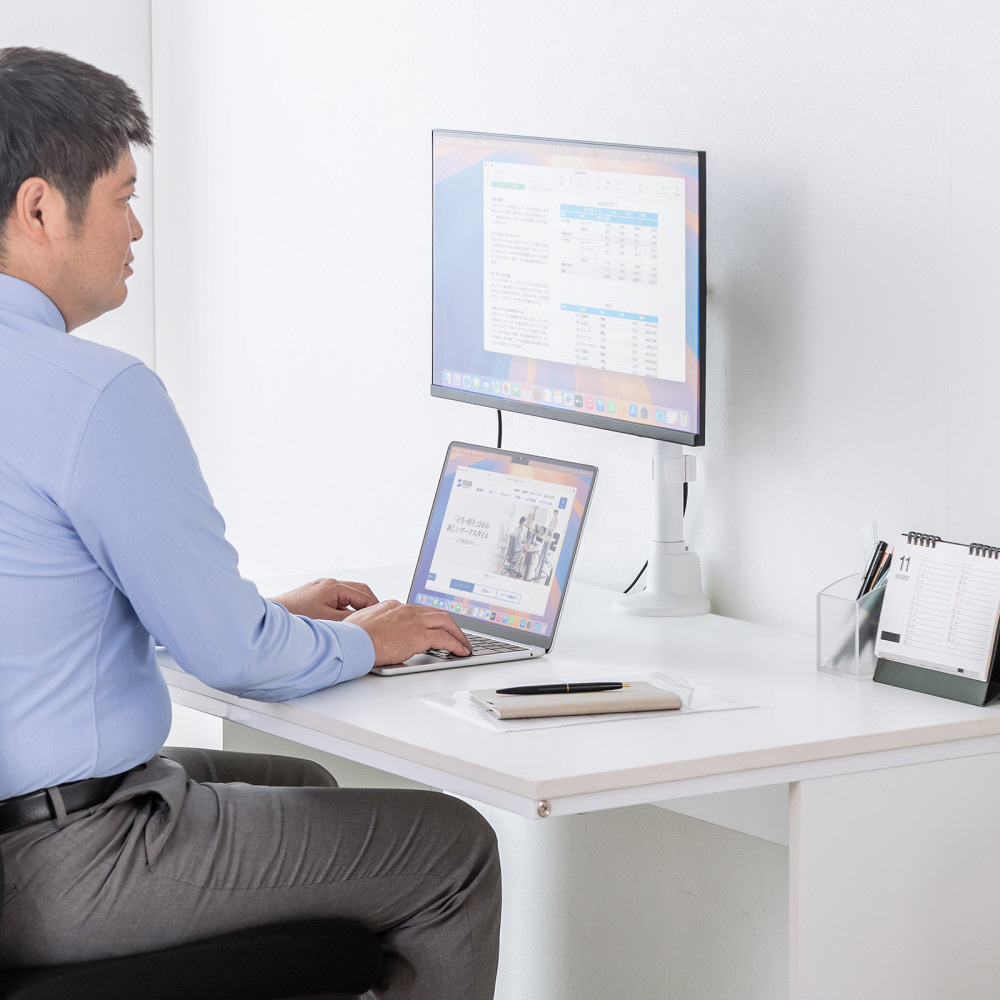 ■モニターアームを使用することでデスク下スペースを有効活用することができます。