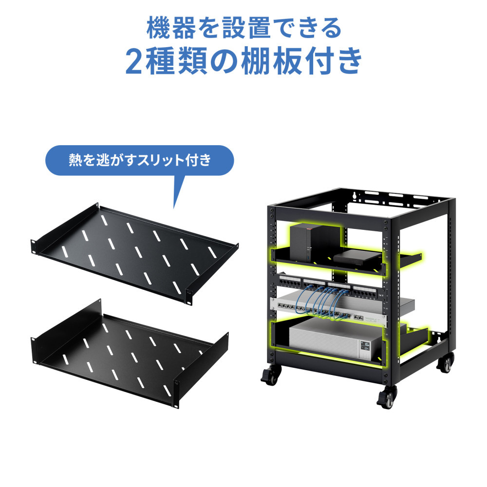 音響や検査機器にも対応。柔軟設置が可能なEIA規格準拠19インチマウントラック。