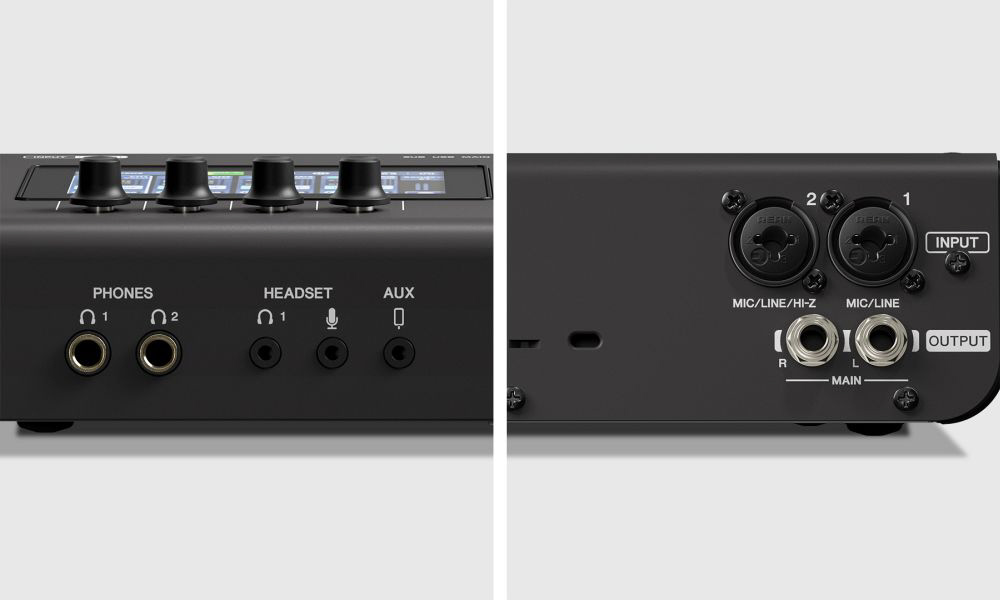 ■2 Mic/Line 入力(1 Combo/3.5 mm ヘッドセットマイク、1 Combo Hi-Z 対応)、1 AUX 入力(3.5 mm)