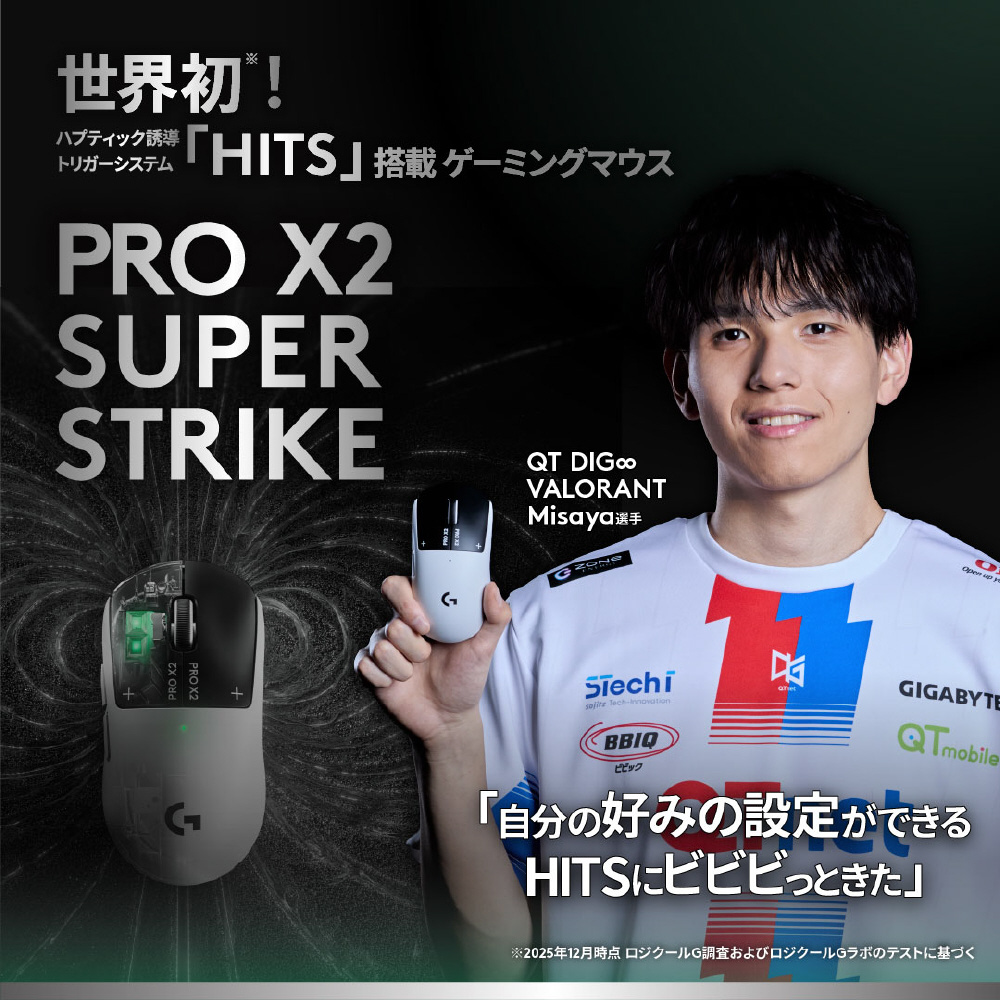 世界初※1のハプティック誘導トリガーシステム(HITS)を搭載した、ロジクールGの次世代ゲーミングマウス。HITSの搭載により、eSports業界最速のクリック反応と、アクチュエーションポイントやラピッドトリガーの自由なカスタマイズの両立が可能となりました。※1 2025年12月時点 ロジクールG調査およびロジクールGラボのテストに基づく