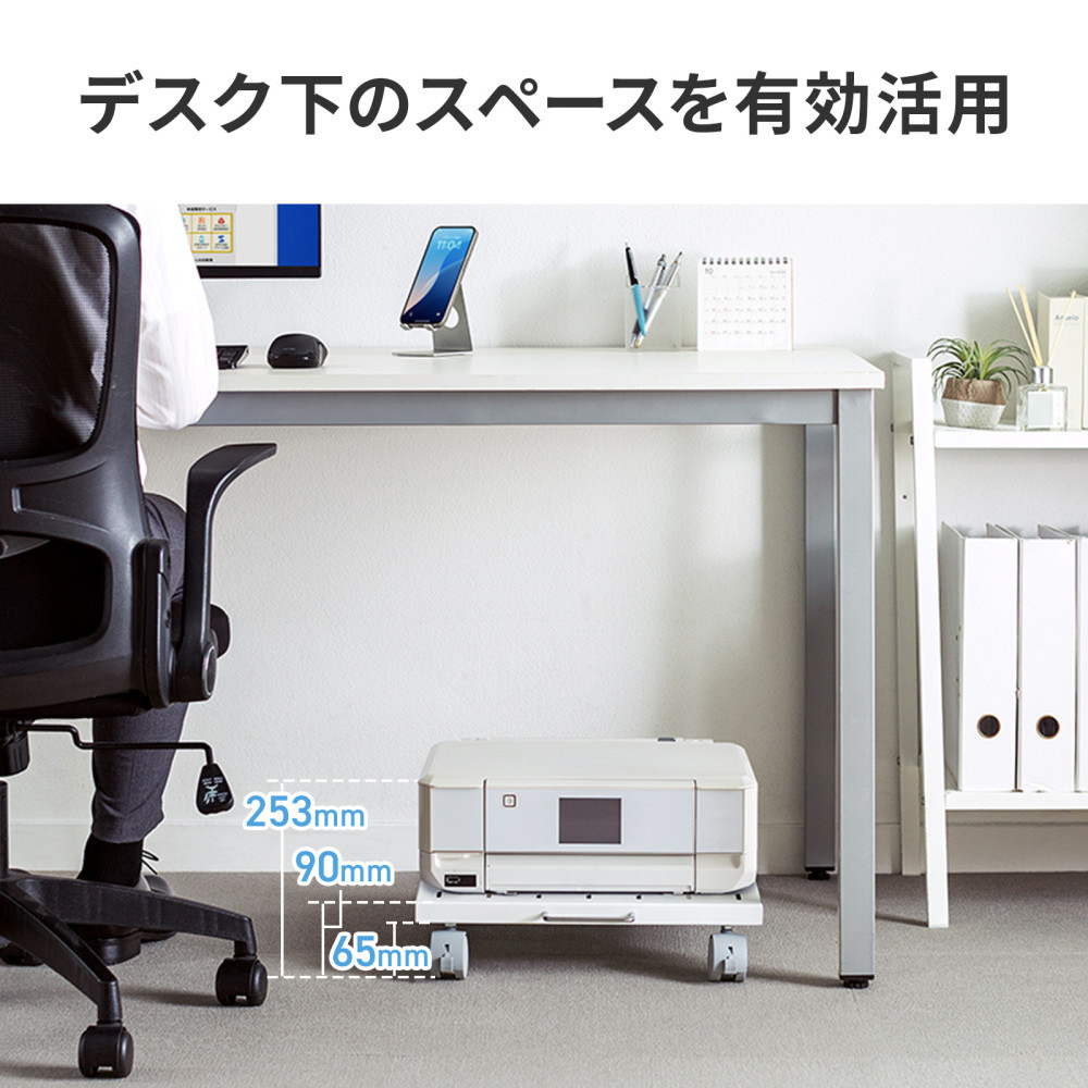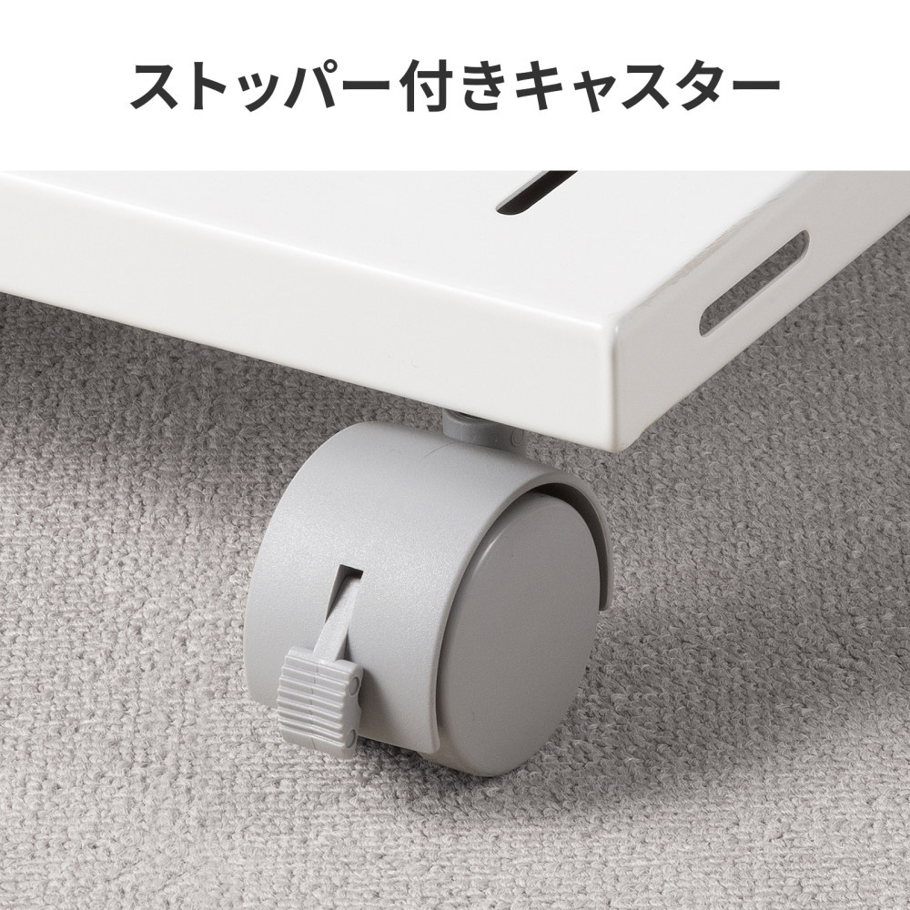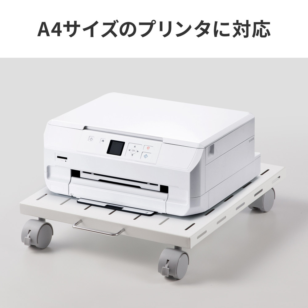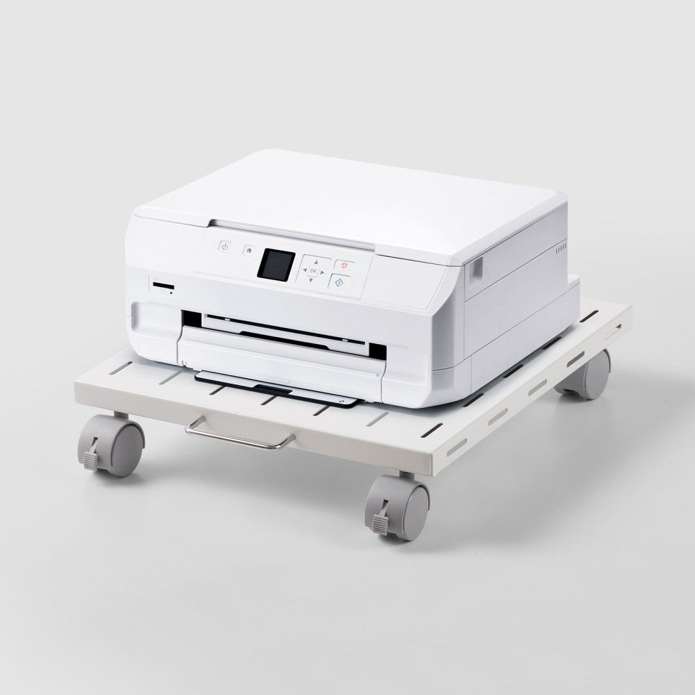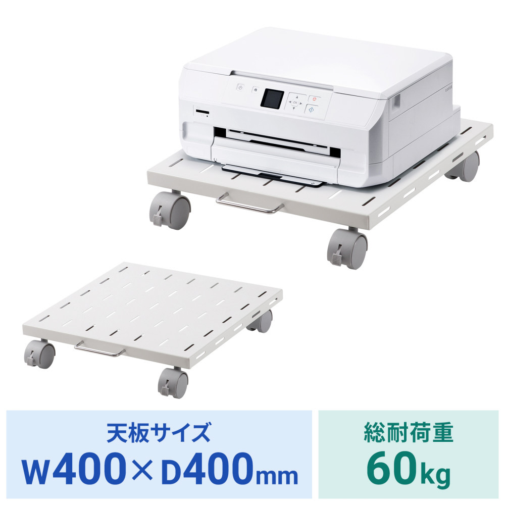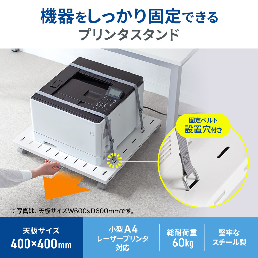 プリンタスタンド [W400xD435xH90mm] スチール製 キャスター付き ストッパー付き 取手付き レーザープリンター対応 耐荷重60kg オプション対応 ホワイト LPS-T4040FK