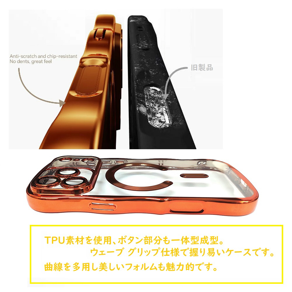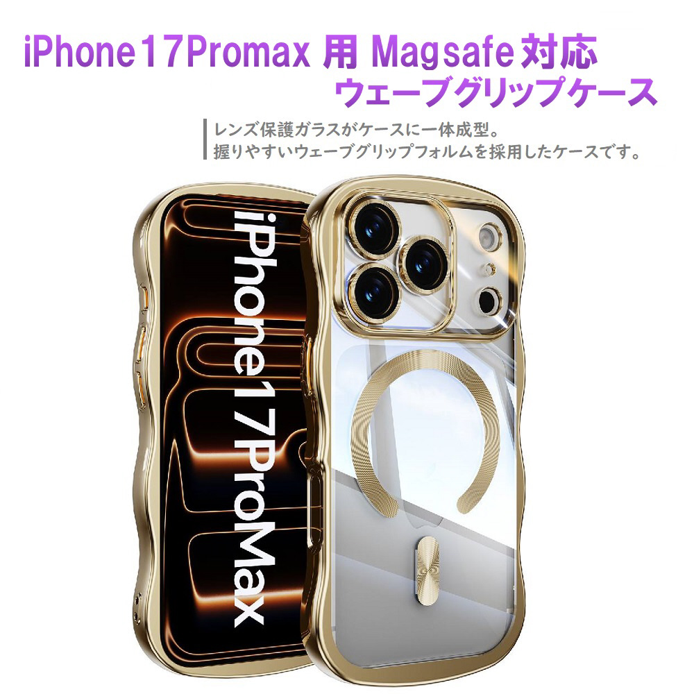 iPhone17Promax MagSafe対応 メタリックカラー 保護ガラス一体型ケース(ゴールド)