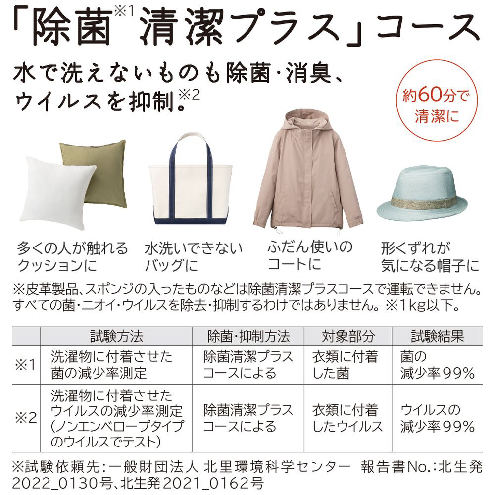 ・水で洗えないものも除菌・消臭・ウイルス抑制「除菌清潔プラス」コース