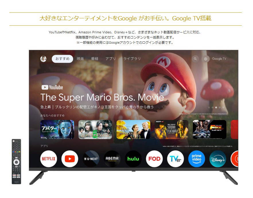 大好きなエンターテイメントをGoogle がお手伝い。Google TV搭載
