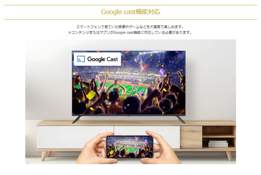 ※コンテンツまたはアプリがGoogle Cast機能に対応している必要があります。