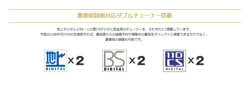 地上デジタルとBS・110度CSデジタル放送用のチューナーを、それぞれ2つ搭載しています。