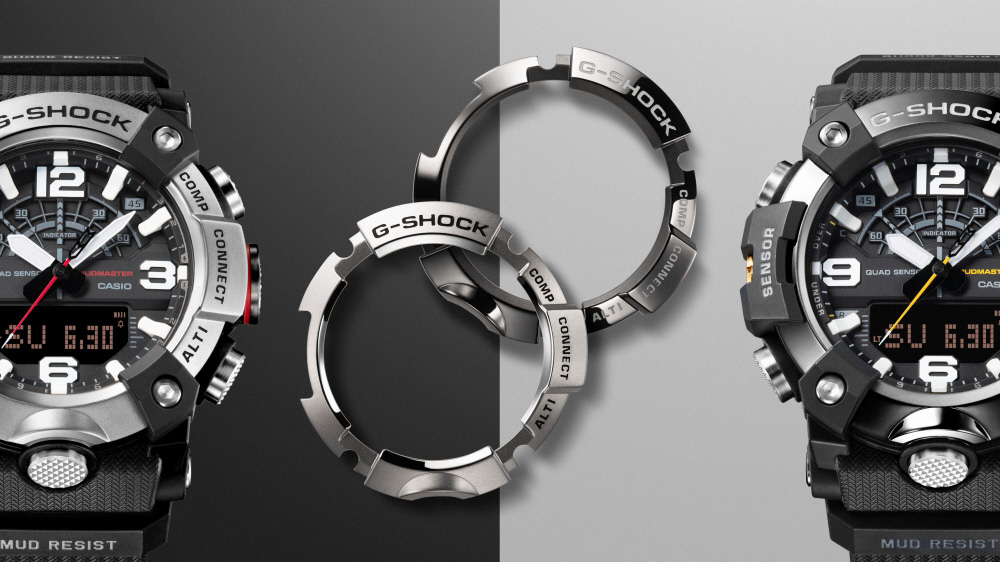 GG-B100XM-1AJFは、ステンレススチール製のシルバーベゼルにホーニング加工を施すことで泥や砂塵に対する耐傷性を高め、光の反射を抑えた落ち着きのあるマットな質感に仕上げました。