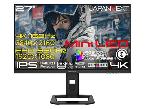 27インチ IPSパネル搭載 Mini LEDバックライト採用 Dual Frame Rate(4K:160Hz/フルHD:320Hz)対応 4K(3840x2160)解像度 ゲーミングモニター