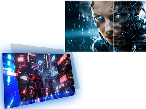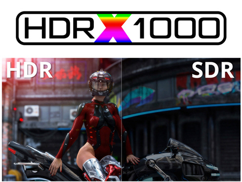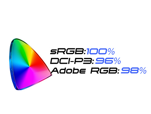 ■SDR表示では450cd/m2、HDR表示ではピーク輝度1000cd/m2に対応し、APL15%(画面の一部が明るいシーン)でも最大1500cd/m2を実現する液晶パネルは、HDR1000相当の性能を備えています。また、sRGB:100%、DCI-P3:96%、Adobe RGB:98%の広色域に対応し、コンテンツを色鮮やかに映し出します。