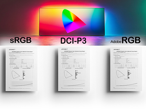 ■本製品は、工場出荷前にキャリブレーションを実施しています。sRGB、DCI-P3、Adobe RGB全てにおいて正確な色再現が可能で、モニターのOSDメニューより簡単にプリセットを選択できます。本製品には、キャリブレーションレポートが付属します。