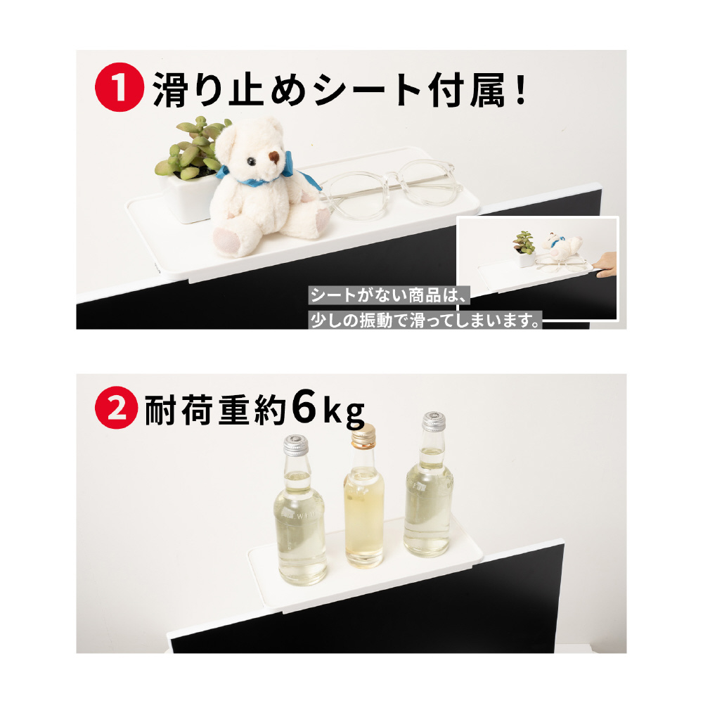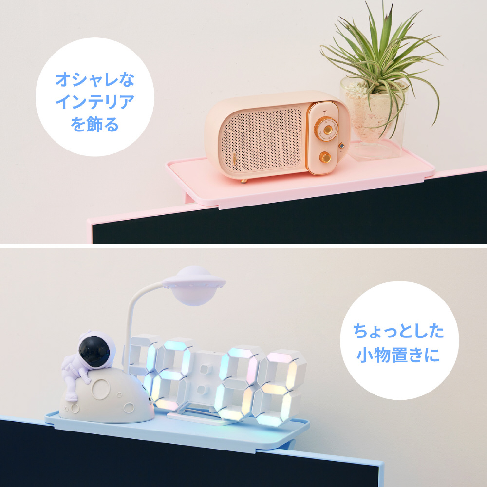 ディスプレイ上部に収納スペースを追加できるディスプレイボードです。