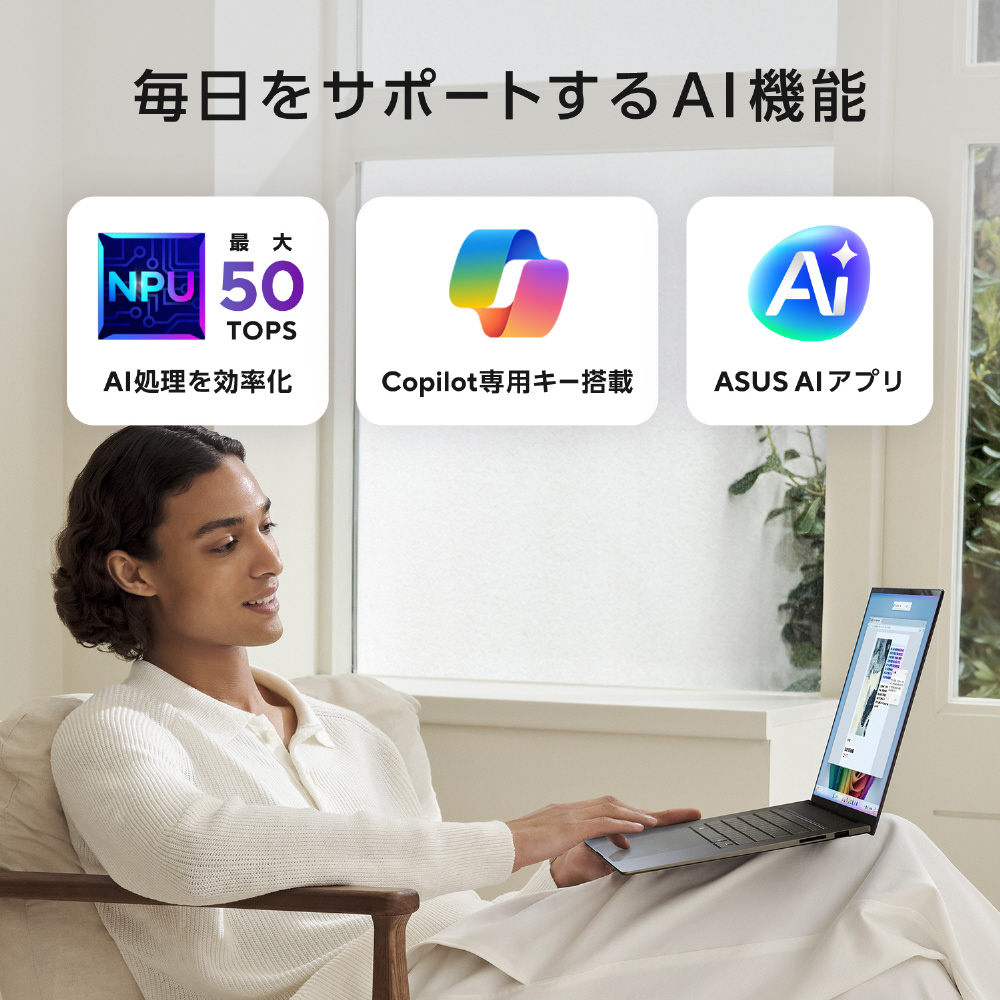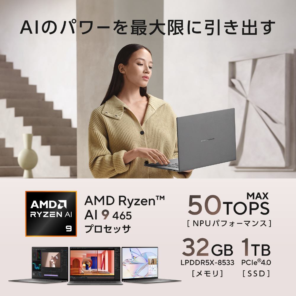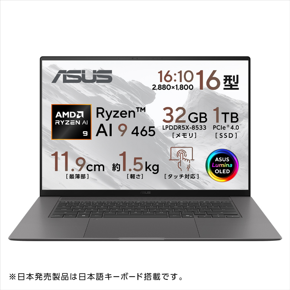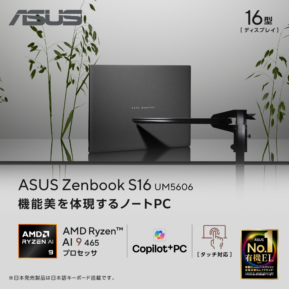 ノートパソコン Zenbook S 16 OLED アントリムグレー UM5606GA-TAI9321GR [Copilot+ PC /16.0型 /Windows11 Home /AMD Ryzen AI 9 /メモリ:32GB /SSD:1TB /日本語版キーボード]