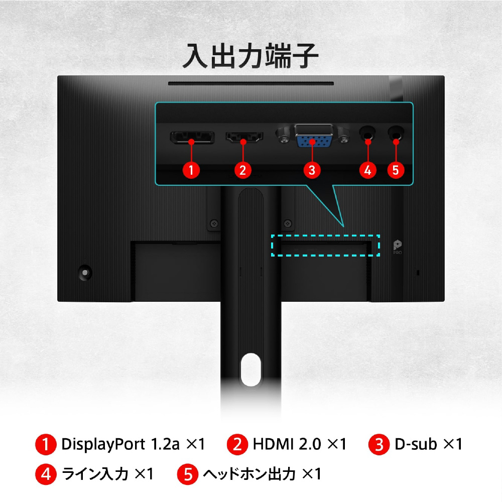 | インターフェイス | HDMI 2.0 x1 DisplayPort 1.2a x1 D-sub x1 |