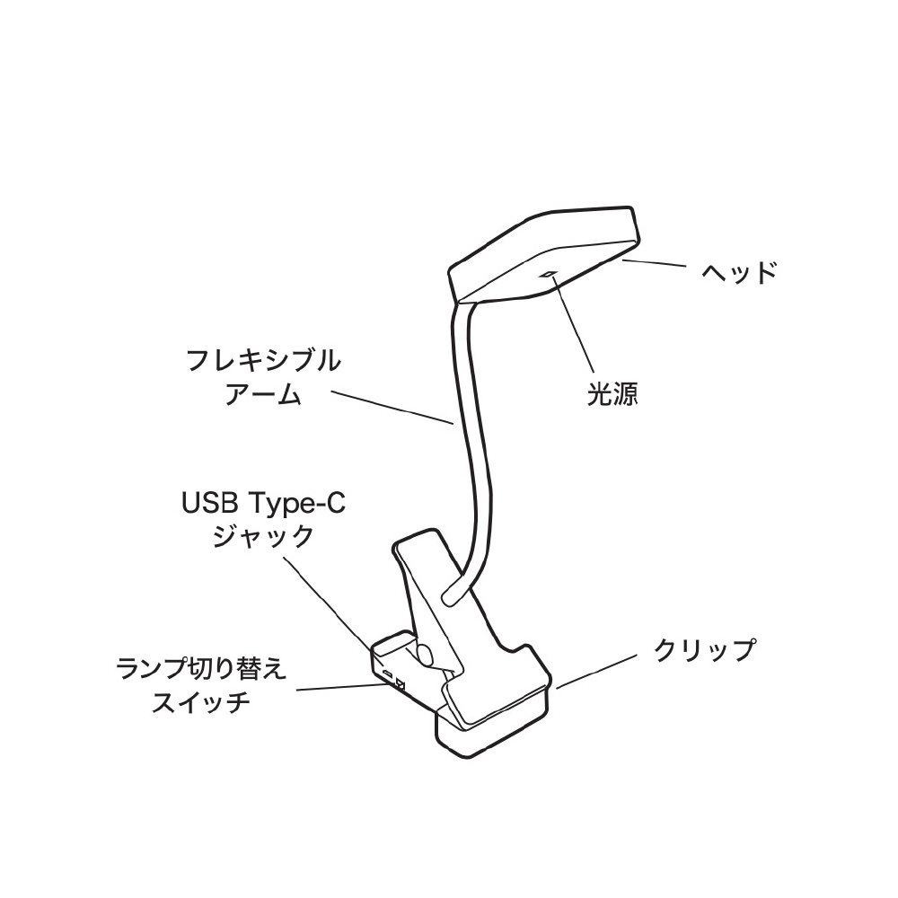 | サイズ | ヘッド:約W55xH15xD70mm、アーム長:約200mm、クリップ:約W60xH95xD105mm |