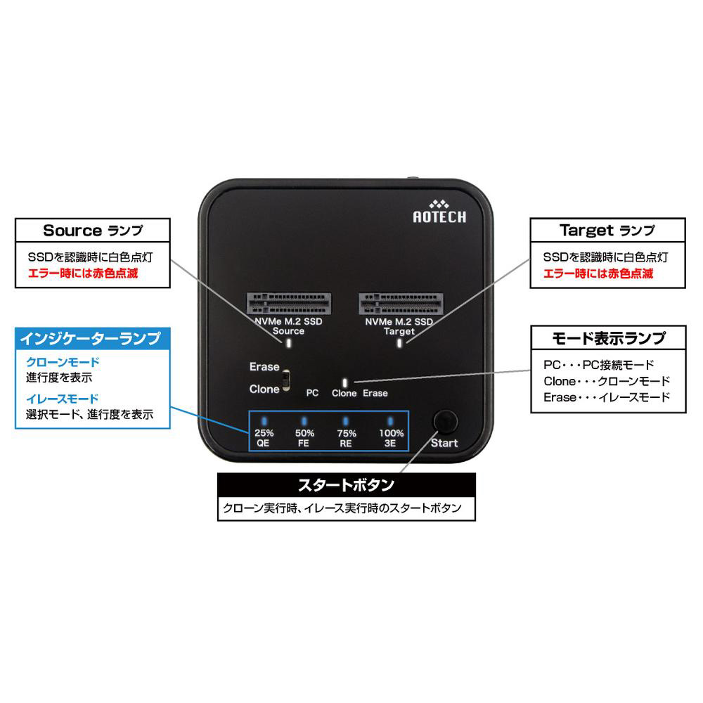 AOK-NVMERCL-20G SSDスタンド USB-C接続 クローン&4モードイレース(Mac/Windows11対応) [M.2対応 /NVMe /2台]