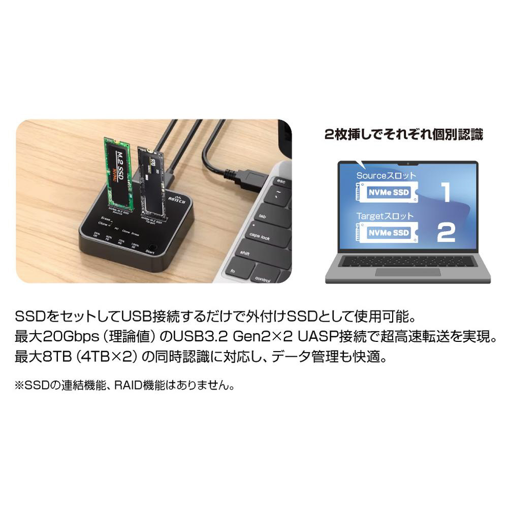 「M.2 NVMe SSD クローン&4モードイレーススタンド」