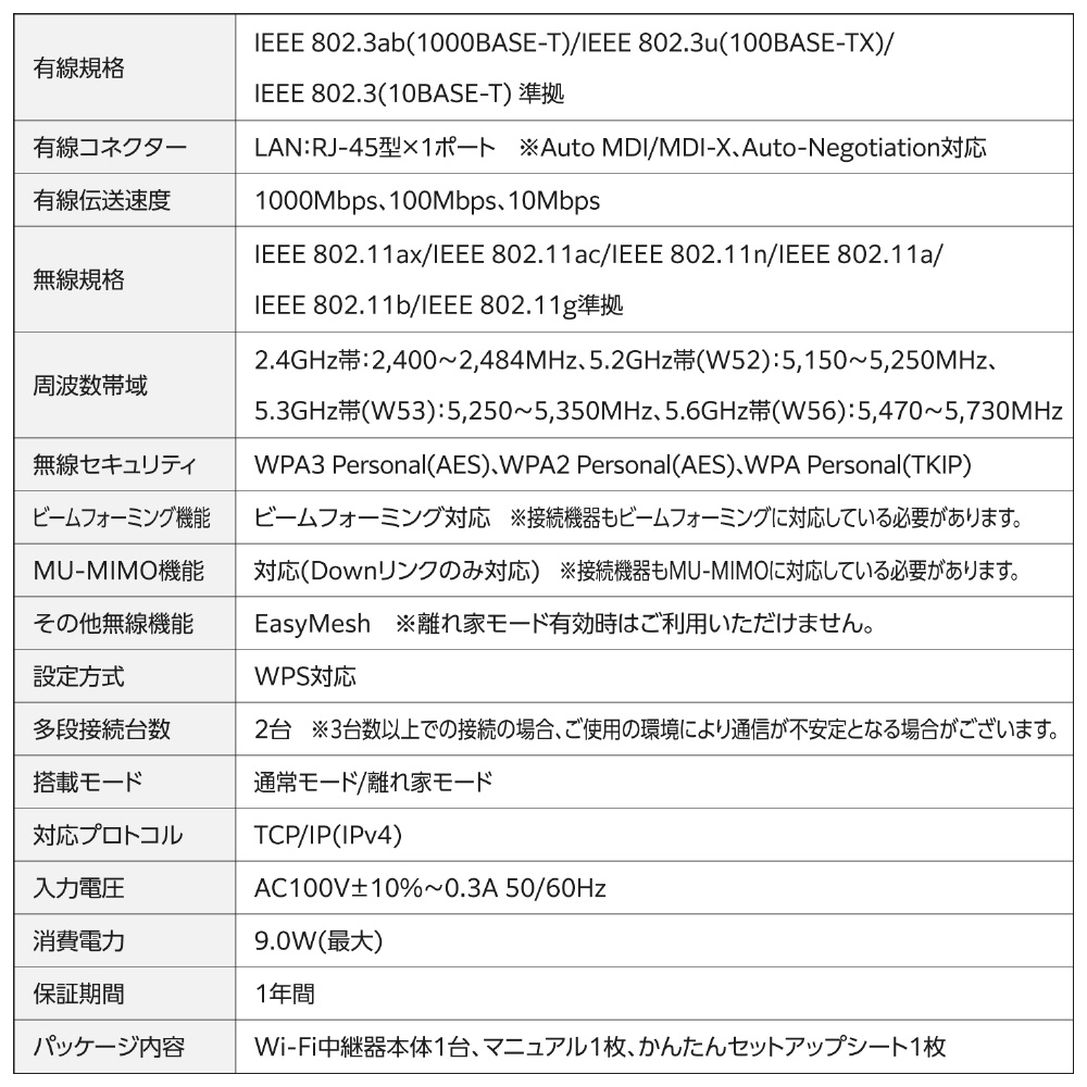 ■Wi-Fi 6対応で家中に電波を届ける中継器