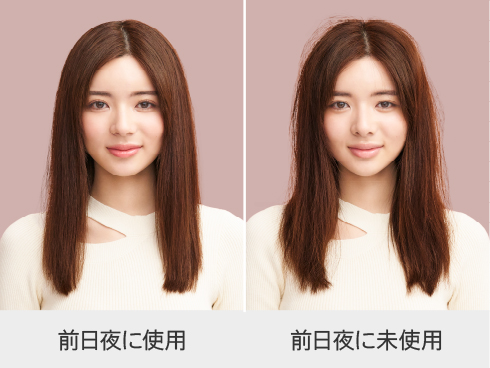 夜のうちにAirstraitを使って髪を乾かしながら整えておくことで、翌朝時短に。