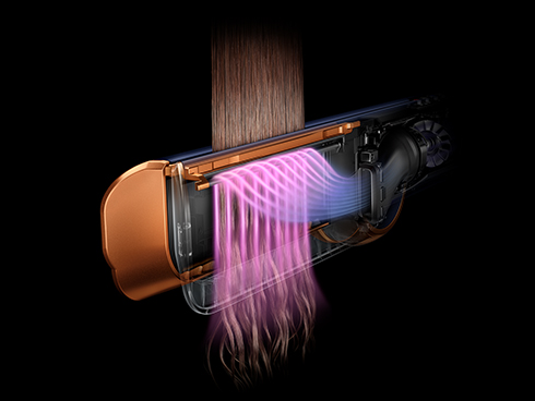 Dyson Hyperdymiumモーターが生み出す集中した気流が髪の流れに沿って流れることで自然なストレートに導きます。