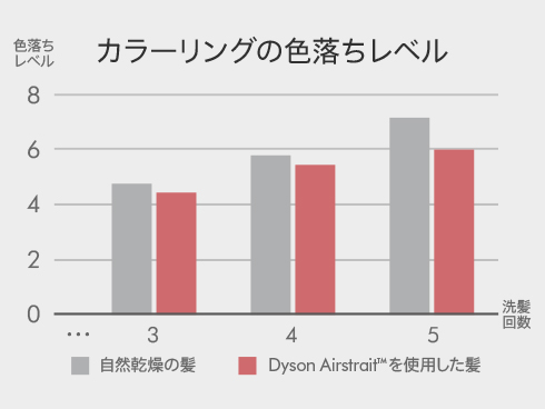 *自然乾燥の髪と本製品を使用した髪のカラーリングの退色レベルを比較。