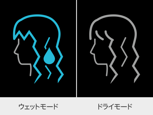 濡れた髪から使えるウェットモードと乾いた髪から使えるドライモードがあり、それぞれのモードに最適な温度設定が可能です。