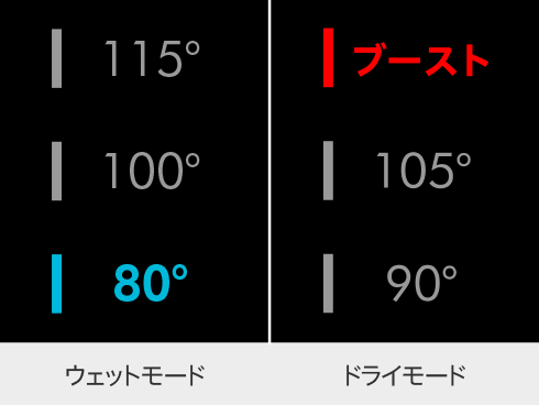 ドライモード: 90℃-105℃-ブースト(最大温度)