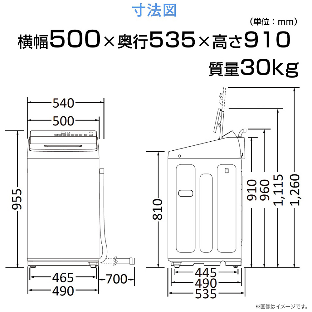 | 付属品 | 給水ホース、給水つぎ手、排水スリーブ、糸くずフィルター、底カバー |