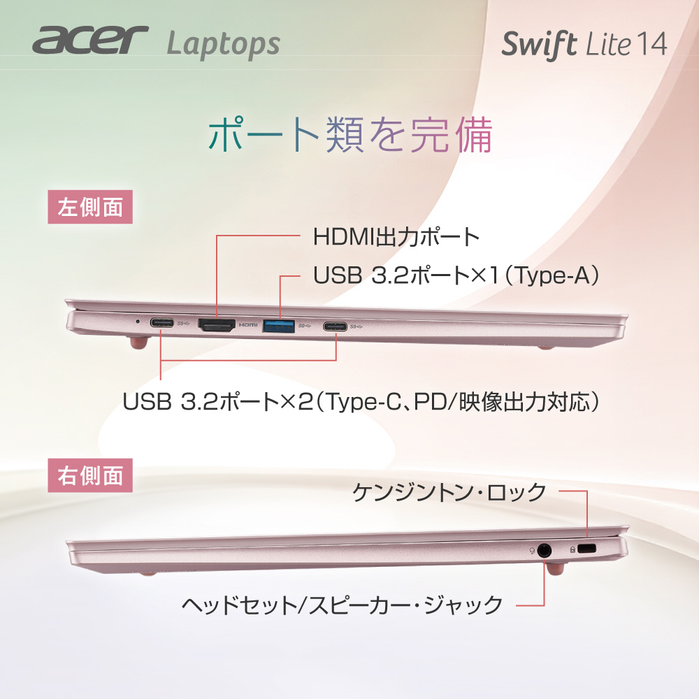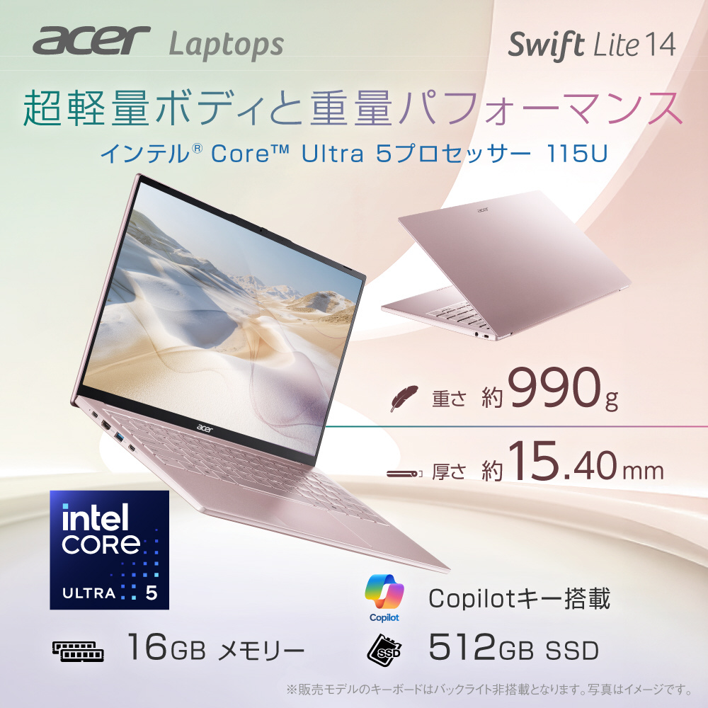 ノートパソコン Swift Lite 14 ピンク SFL14-54MP-F56Y/PF [14.0型 /Windows11 Pro /intel Core Ultra 5 /メモリ:16GB /SSD:512GB /M365 (24か月) or Office 選択可能 /日本語版キーボード /2026年モデル]