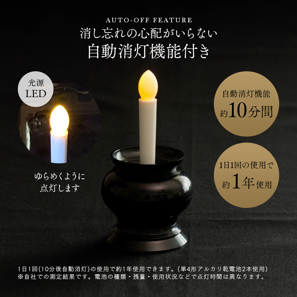 約10分で自動消灯するLED仏具。