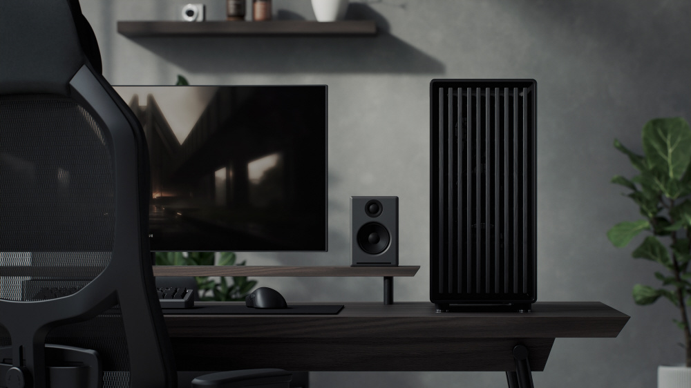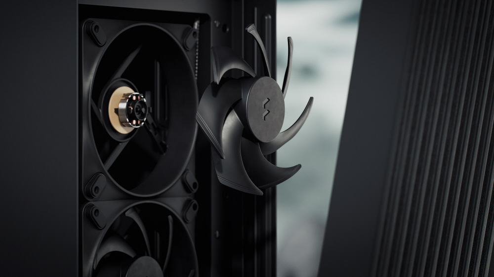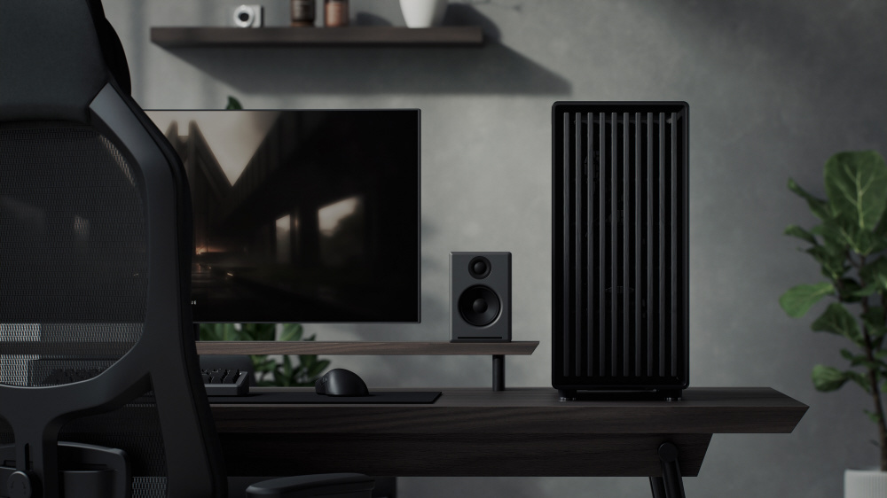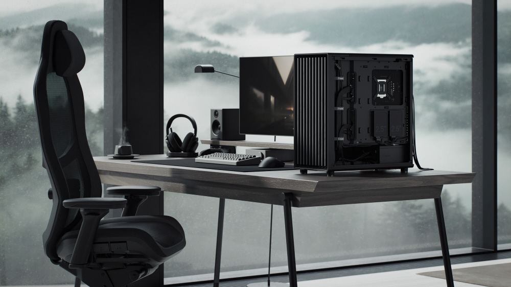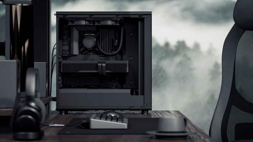 木材を使ったフルブラックデザイン。3基の液晶ポリマー製ブレードファンを搭載し、高いエアフローを実現するミドルタワー型PCケース