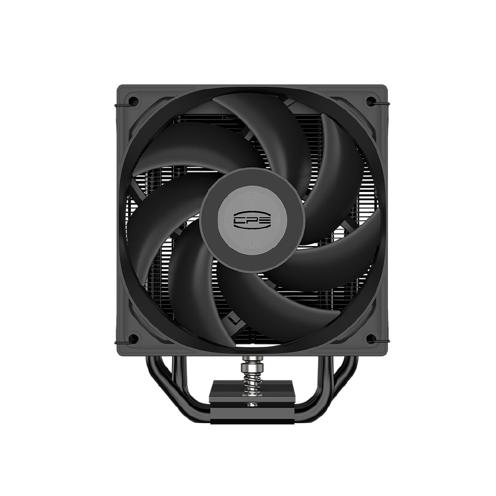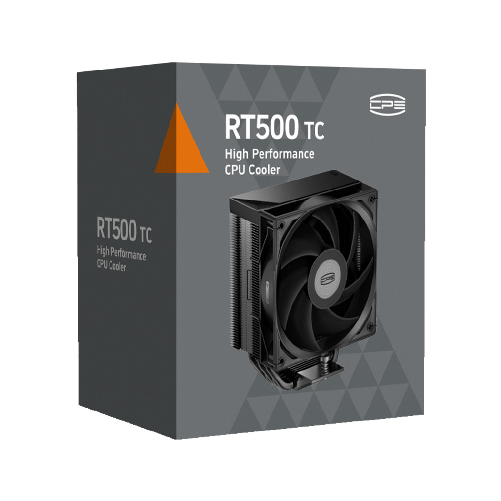 「CPS」ブランドの6mm径x5本のダイレクトヒートパイプを搭載した120mm サイドフロー型CPUクーラー「RT500 TC-BK」ブラックモデル、ファンは非発光タイプ。
