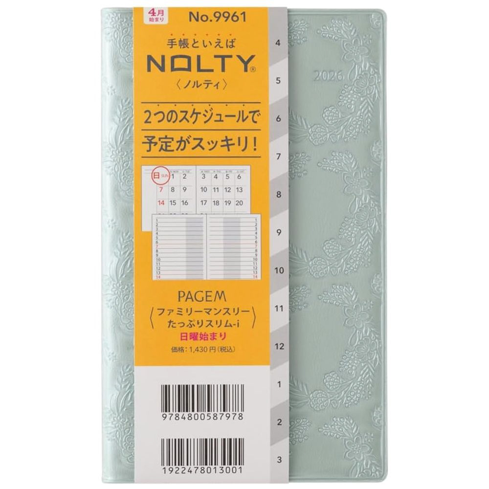 2026年版4月始まり PAGEM(ペイジェム) ファミリー×マンスリーたっぷりスリム-i 手帳 ミント 9961 [ウィークリー /日曜日始まり]
