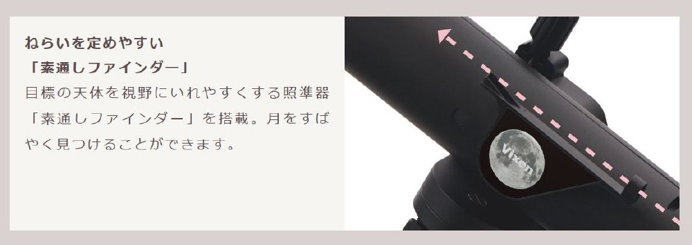 ミルムーンでは、簡単に天体を望遠鏡の視野に導入できる「素通しファインダー」を搭載。