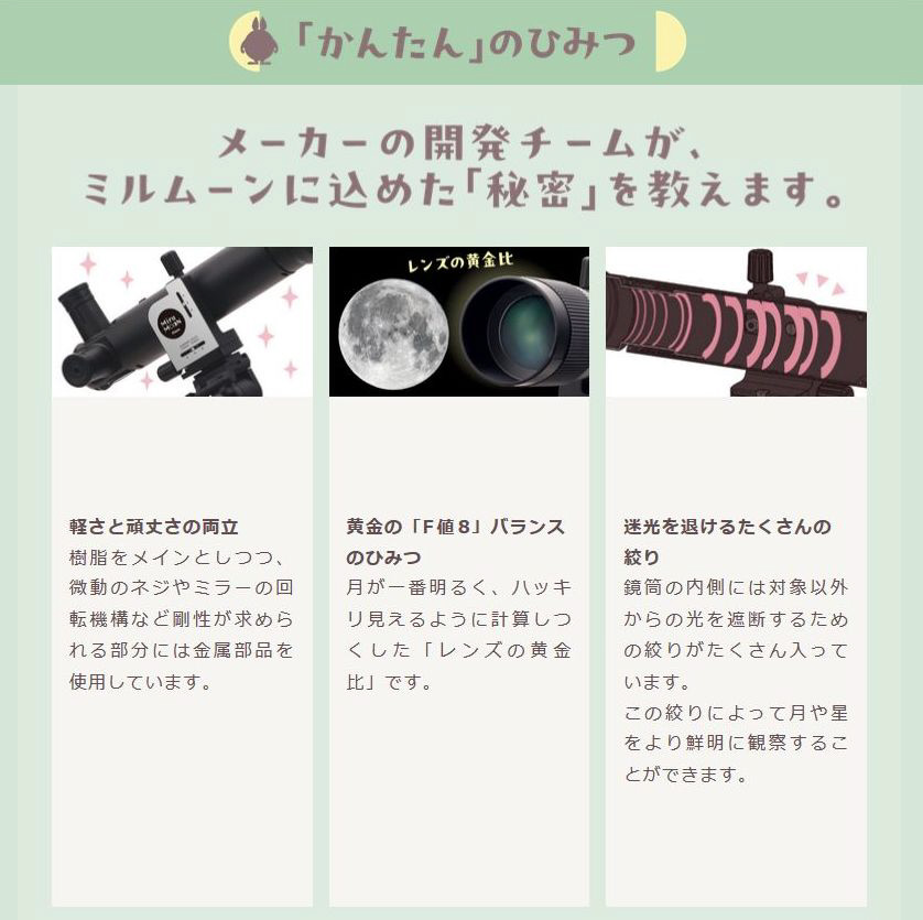 「天体観察はむずかしそう…」 そんなイメージをくつがえす、手軽なお月見望遠鏡「ミルムーン」