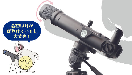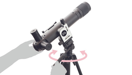 3. 月を探す:三脚の雲台をゆるめ、ハンドルを使いながら月のおおよその方向へ鏡筒を向けます。