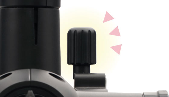上下・左右の大きな動きも、ハンドルとクランプで操作可能。