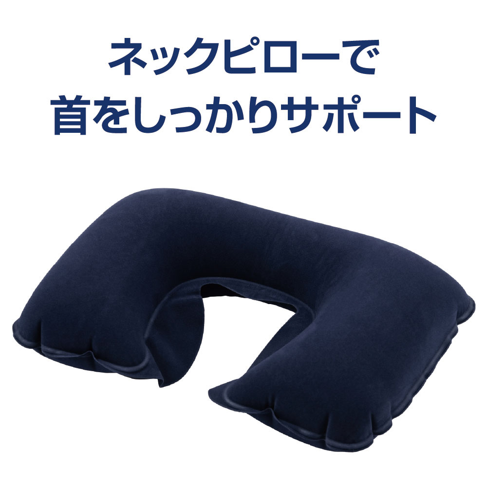 ネックピロー:航空機内で使用する場合は気圧の関係で膨張するため、少なめに空気を入れてください