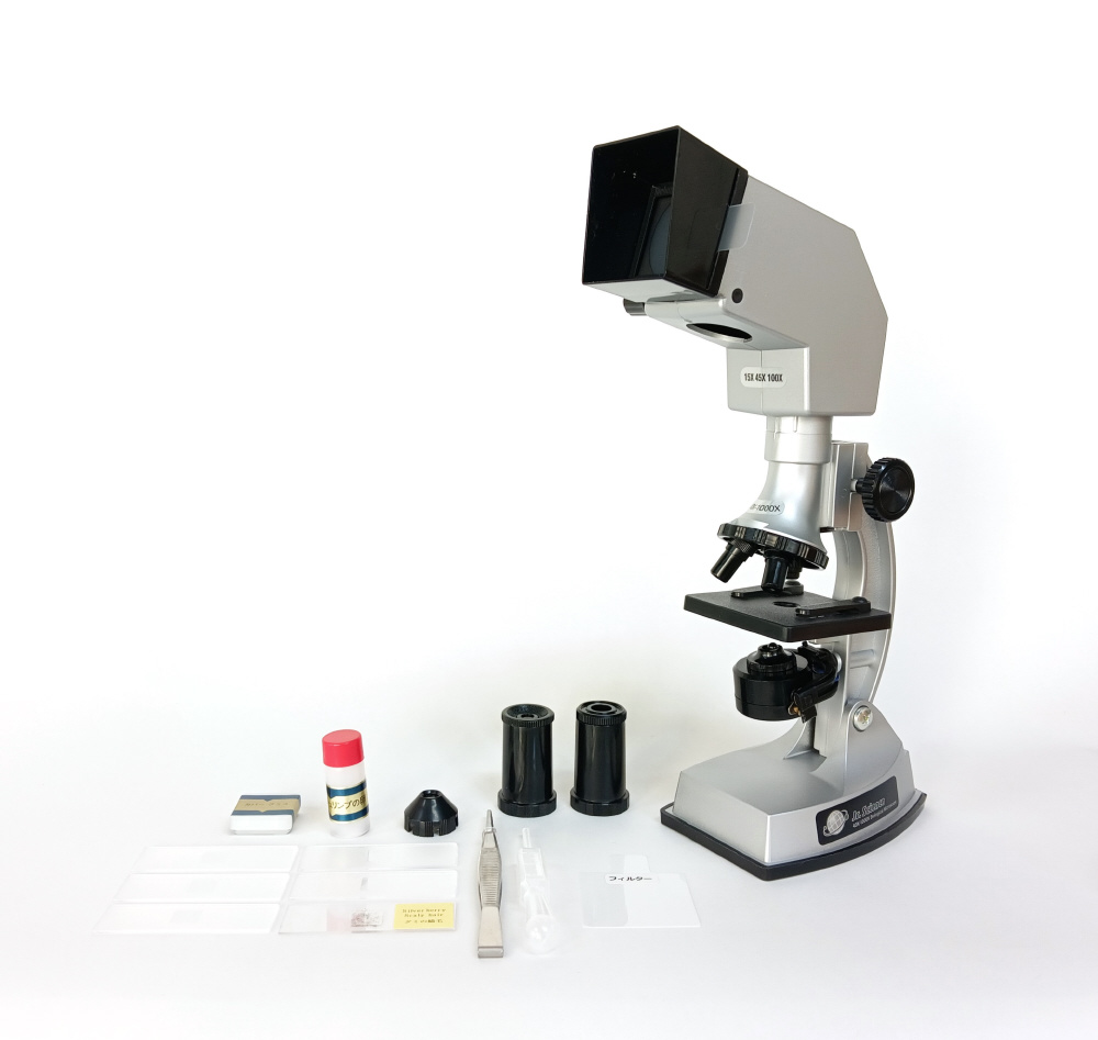 低倍率から高倍率まで幅広い倍率で観察できる顕微鏡です。学校の勉強や自由研究はもちろん、身の回りで気になるものがあったら、何でも顕微鏡で見てみましょう。植物の細胞、微生物、昆虫などは顕微鏡で観察すると驚きがいっぱい。プレパラートやスライド、カバーガラスなどの観察用具や、観察の仕方や標本の作り方がわかる顕微鏡観察ガイドブックがついていますので、これ一台ですぐに観察が始められます。
