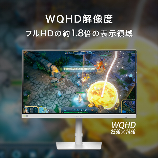 WQHD(2560×1440)対応となりフルHD(1920×1080)と比べて約1.8倍ゲームを繊細に表示することが可能、かつ最大320Hzの高速リフレッシュレートに対応。