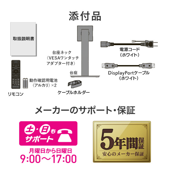 添付ケーブル、電源コードも筐体と同じカラーでコーディネート。