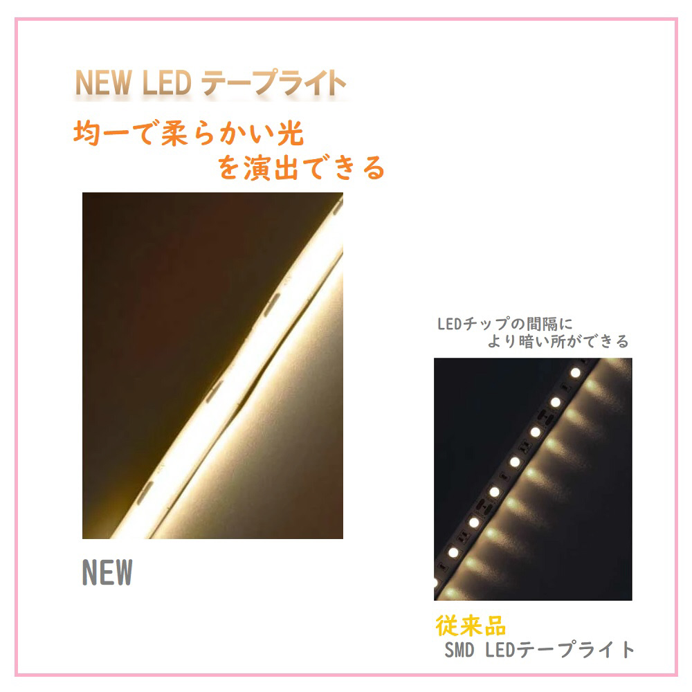 COB LEDテープライトにはCOB発光面があり、光束角180°で光は均一で柔らかく優れた商品です。