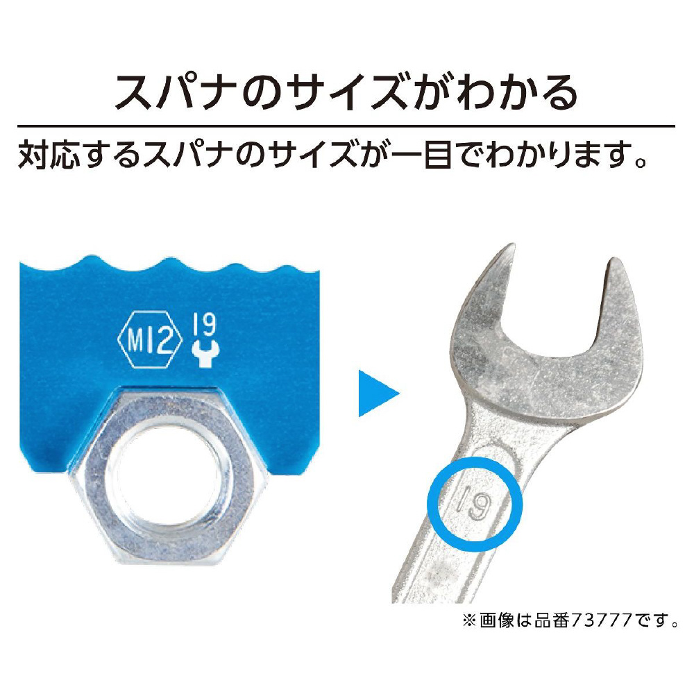 対応するスパナのサイズが一目でわかります。