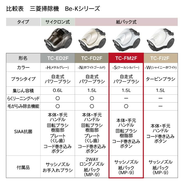 三菱紙パック式掃除機 Be-K(ビケイ) クールシルバー TC-FM2F [紙パック式 /コード式]