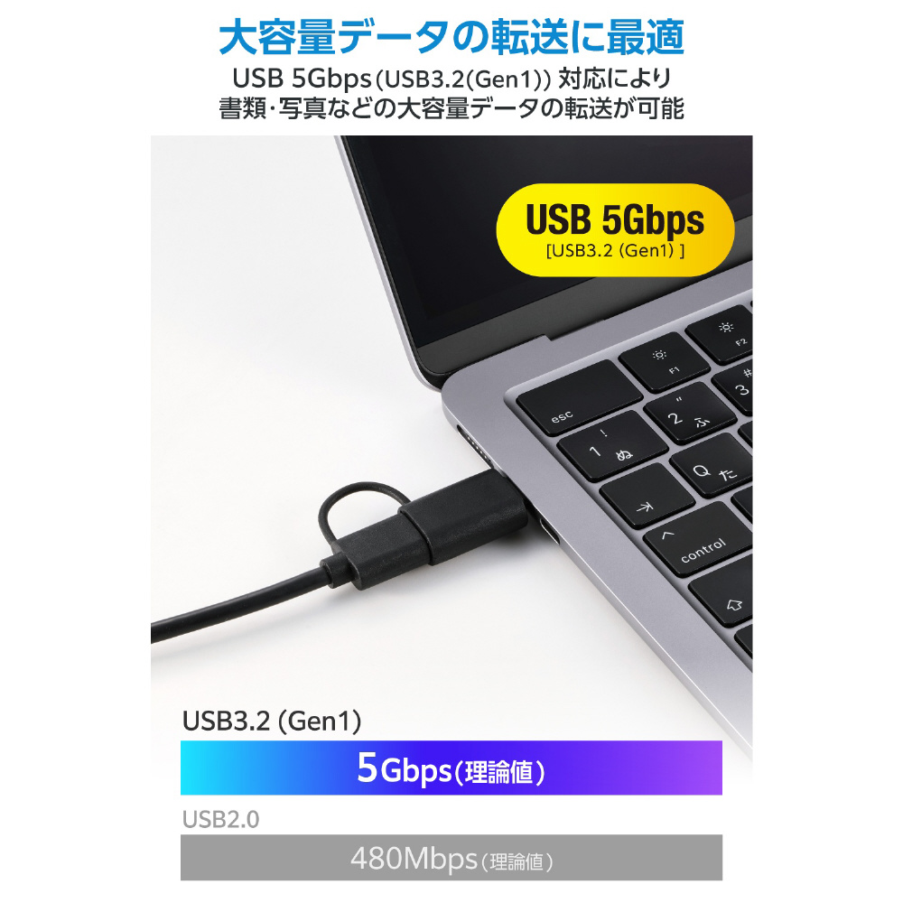 「USB-C変換アダプター付き USBハブ(7ポート/USB 5Gbps)」