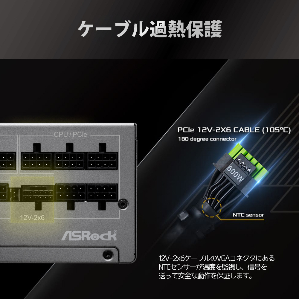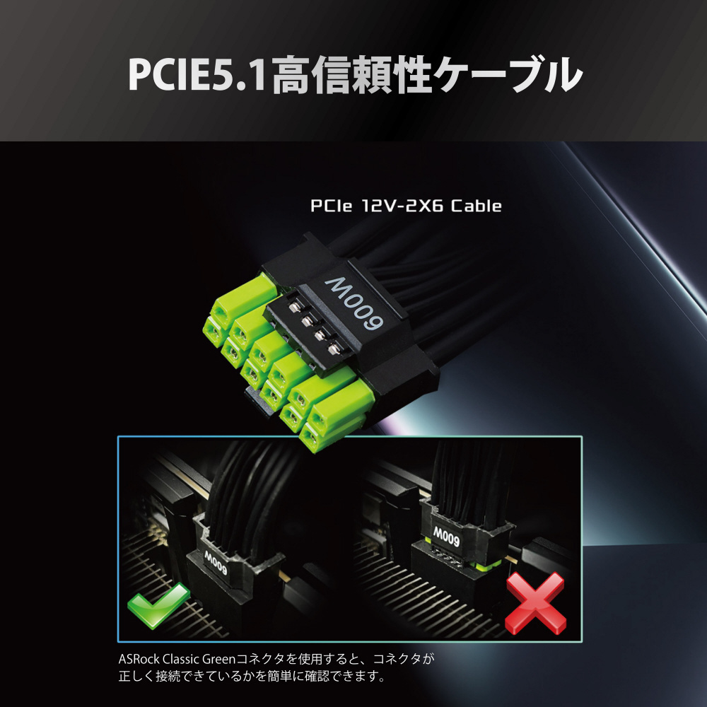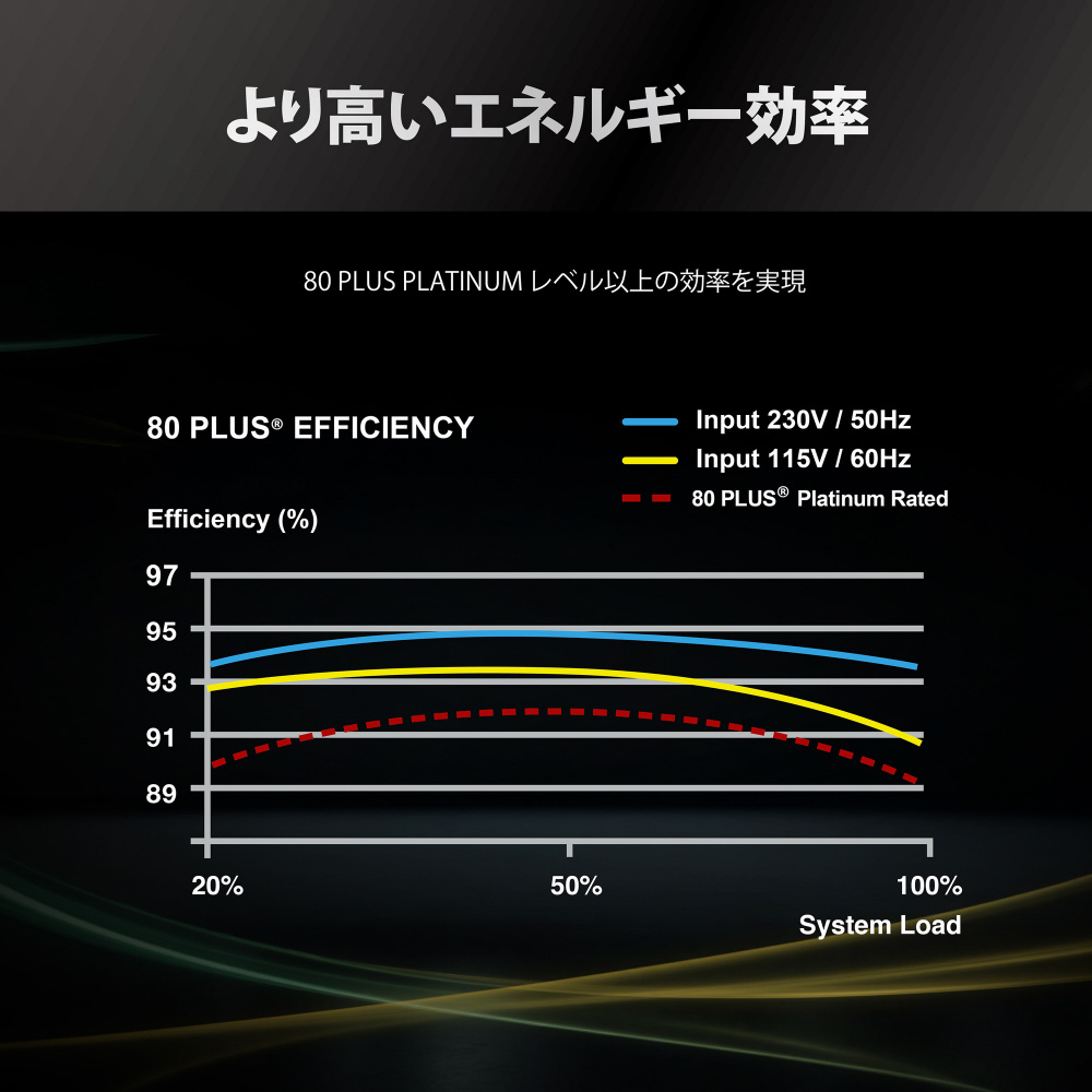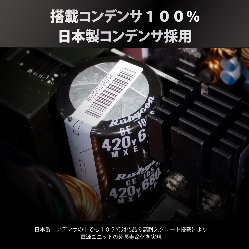 80PLUS /PLATINUM、Cybenetics認定取得。PCI Express 5.1に対応し、安定性と耐久性に優れたフルモジュラータイプの電源ユニット