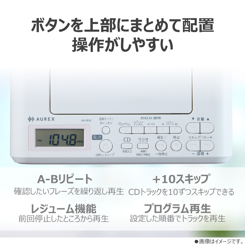 | 商品名 | CDラジオ AUREX ピンク AX-CR30(P) [ワイドFM対応 /ハイレゾ非対応 /Bluetooth非対応] |