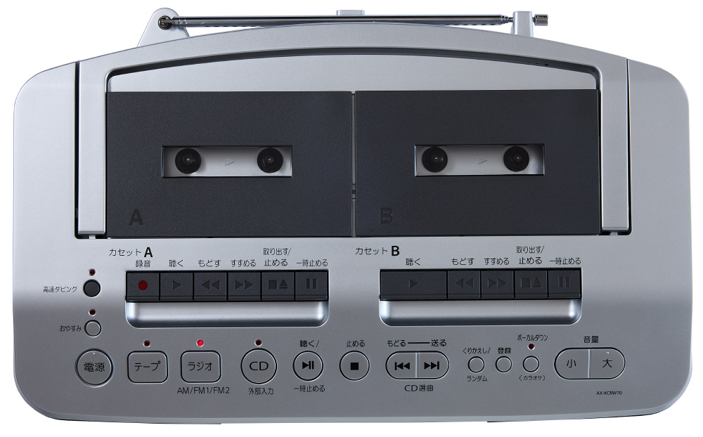 音声が聴こえやすい「声くっきり機能」搭載。カラオケにも便利なダブルカセットレコーダー