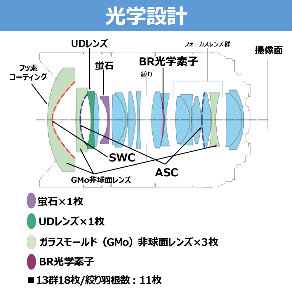 | レンズ構成 | 13群18枚 |