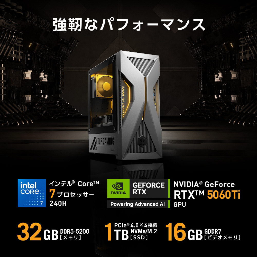 T500MV-07240H108W ゲーミングデスクトップパソコン TUF Gaming ソーラーエクリプスグレー [モニター無し /Windows11 Home /intel Core 7 /メモリ:32GB /SSD:1TB /無し]