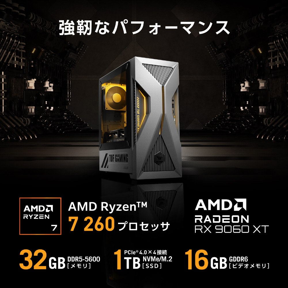 TM500MH-R732G1TB9060XT ゲーミングデスクトップパソコン TUF Gaming ソーラーエクリプスグレー [モニター無し /Windows11 Home /AMD Ryzen7 /メモリ:32GB /SSD:1TB /無し]